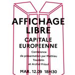 Two artists, Arzhel Prioul and Mathieu Tremblin, propose a protocol for taking over these free billboards by sending postcards in the form of carte blanche to other artists. After identifying the appropriate panels and contexts for the works, the completed cards are then reproduced to scale and displayed. The public space is altered, but it’s a very ephemeral art form, since anyone can cover these panels freely.