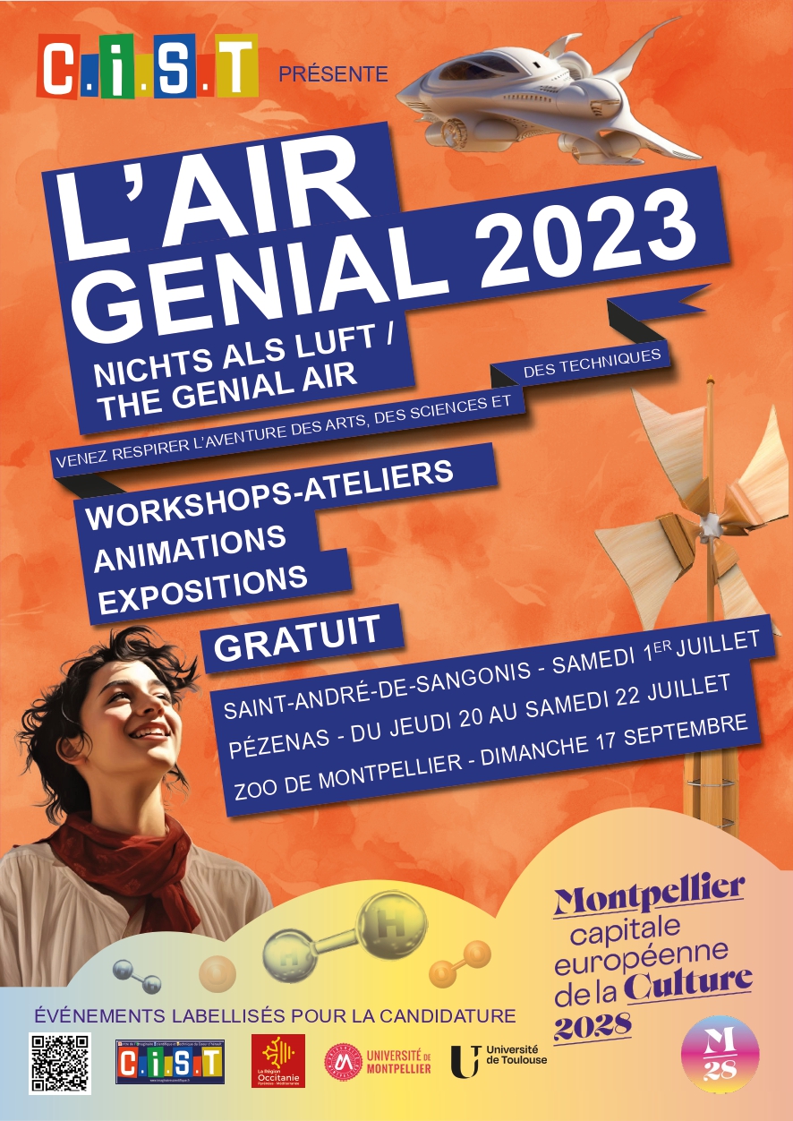 3, 2, 1 : soufflez ! Entrez dans L’air génial 2023 avec le CIST (Centre de l’Imaginaire Scientifique et Technique). Des workshops créatifs pour que toutes et tous découvrent l’air par le prisme des arts et des sciences. Au programme : temps de réflexion entre publics, artistes et scientifiques européens, créations d’œuvres, de spectacles et de prototypes.